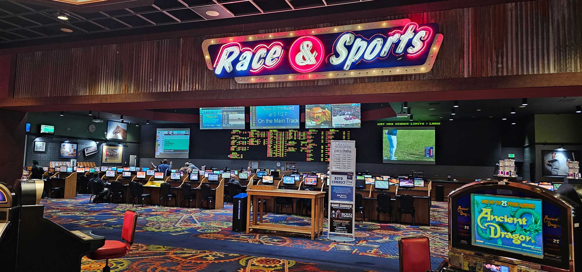 To illustrate, this property is part of the Boyd Gaming empire. The entire site sit on 28 acres and has over 72,000 sq-feet foot print. They offer many different amenities. For example, they have the typical machines and tables for your gaming enjoyment. In addition, there is a bingo hall, Slots Parlor, and a Race and Sports Area.