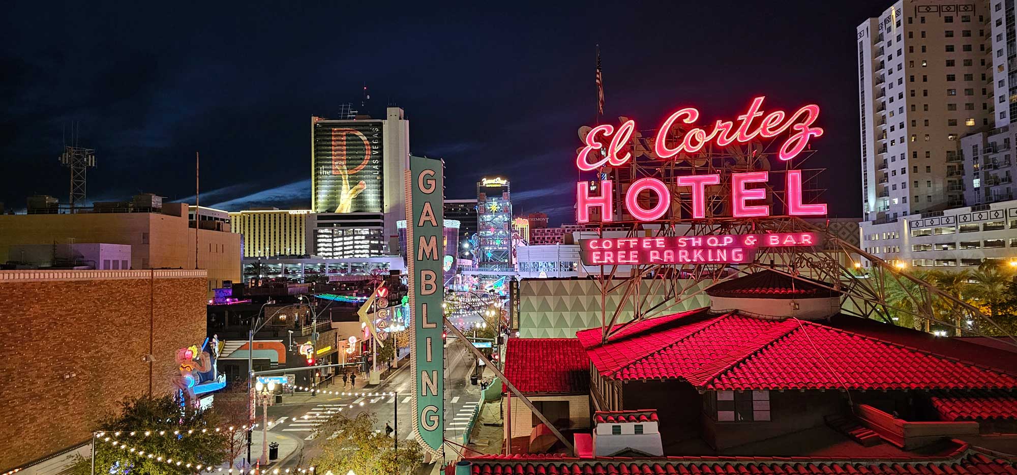 El Cortez Hotel is a Las Vegas Classic. Opening in 1941 with a vast history. Likewise, I always have great time here. The place has a fresh and fun atmosphere. They are slightly East of the Fremont Street Experience. Near the Container Park on Fremont street ( 600 E Fremont St, Las Vegas, NV 89101 ).