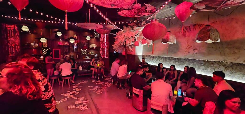 Here Kitty Kitty is a speakeasy. You have to keep your eye out for the entrance or you will never see it. Here Kitty is located inside Resorts World. To illustrate, the entrance is located in the food court area. See the hostess in front of Fuhu Cha Chann Teng. You would never know there is a really cool bar here.